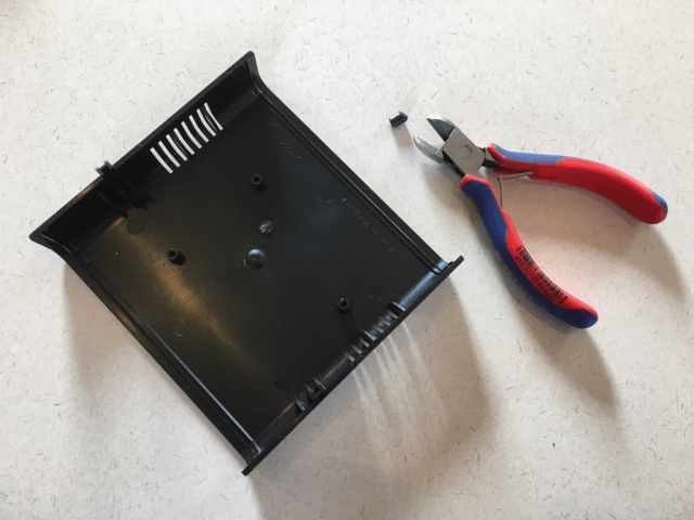 Beim Gehäuse musste noch eine der Befestigungsmöglichkeiten entfernt werden, da die Platine recht groß ist.